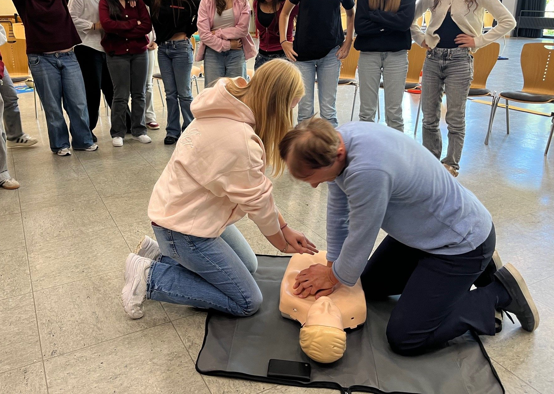 Insgesamt nahmen rund 40 Jugendliche aus den Klassenstufen 7 und 9 am Schiller-Gymnasium Offenburg und am Max-Planck-Gymnasium Lahr teil. Unter der Leitung von Professor Dr. Philipp Diehl, Chefarzt des Departments für Kardiologie, Pneumologie, Angiologie, Akutgeriatrie, Intensivmedizin und Thoraxchirurgie, sowie dem Sektionsleiter Kardiologie Dr. Fabian Meixner erhielten die Schülerinnen und Schüler eine umfassende theoretische Einführung, gefolgt von praktischen Übungen an Reanimationspuppen. Unterstützt wurden die beiden Mediziner von den Schulleitungen und den Schulsanitätern vor Ort.